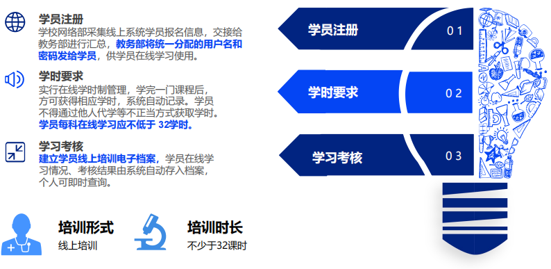 四、考培方式:线上学习和考核。健康类、心理卫生建设、医疗陪诊顾问、中医艾灸疗法考试时间为每月底最后一周的周六或者周日。