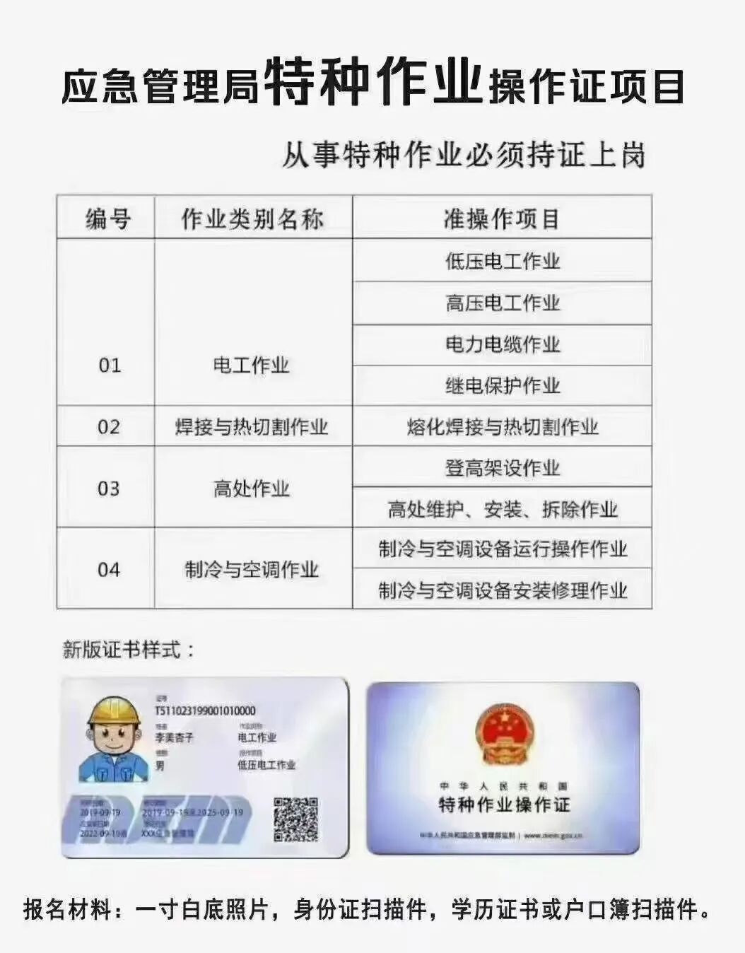 用途:这是从事电工工作的必备证件,证明持证人具备安全操作电气设备的知识和能力。